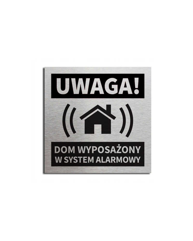 Tabliczka DOM WYPOSAŻONY W SYSTEM ALARMOWY 10x10 cm