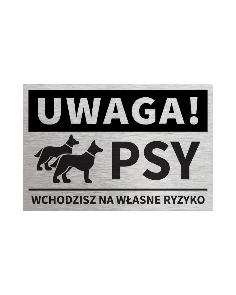 Tabliczka UWAGA PSY WCHODZISZ NA WŁASNE RYZYKO 15x10 cm
