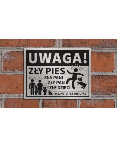 Tabliczka UWAGA ZŁY PIES ZŁA PANI ZŁY PAN ZŁE DZIECI 20x15 cm