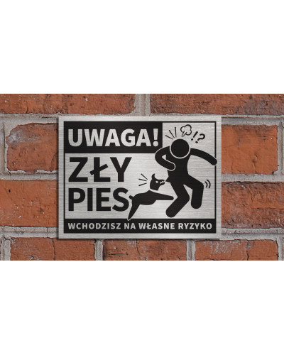 Tabliczka UWAGA ZŁY PIES WCHODZISZ NA WŁASNE RYZYKO 20x15 cm_